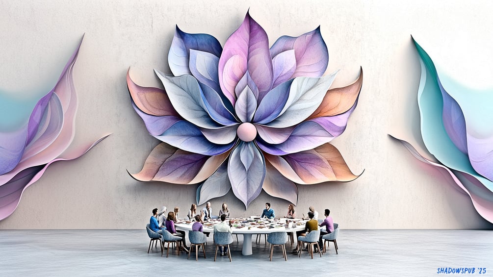 Where creativity meets conversation—_The Art of Connection_ embodies the essence of gathering, sharing, and exchanging ideas. Beneath a breathtaking floral masterpiece, individuals from all walks of life come together in a vibrant space of collaboration and camaraderie.